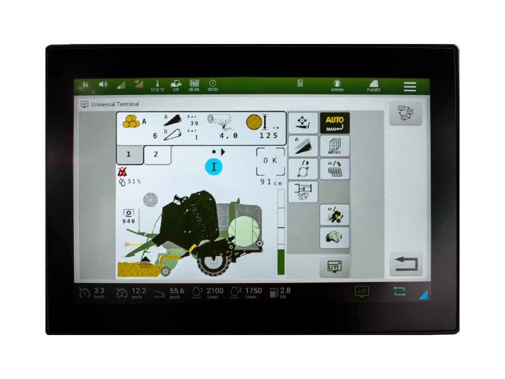 Toutes les machines McHale V6750-II, V6760-II, V8950-II, V8960-II & Fusion Vario Plus sont compatibles ISOBUS en standard. Les machines McHale ISOBUS peuvent être branchées sur n’importe quel tracteur ayant une prise ISOBUS à l’arrière du tracteur, évitant ainsi le passage de faisceau. L’opérateur utilise soit la propre console du tracteur si le tracteur n’est pas ISOBUS l’utilisateur peut utiliser un autre terminal ISOBUS.