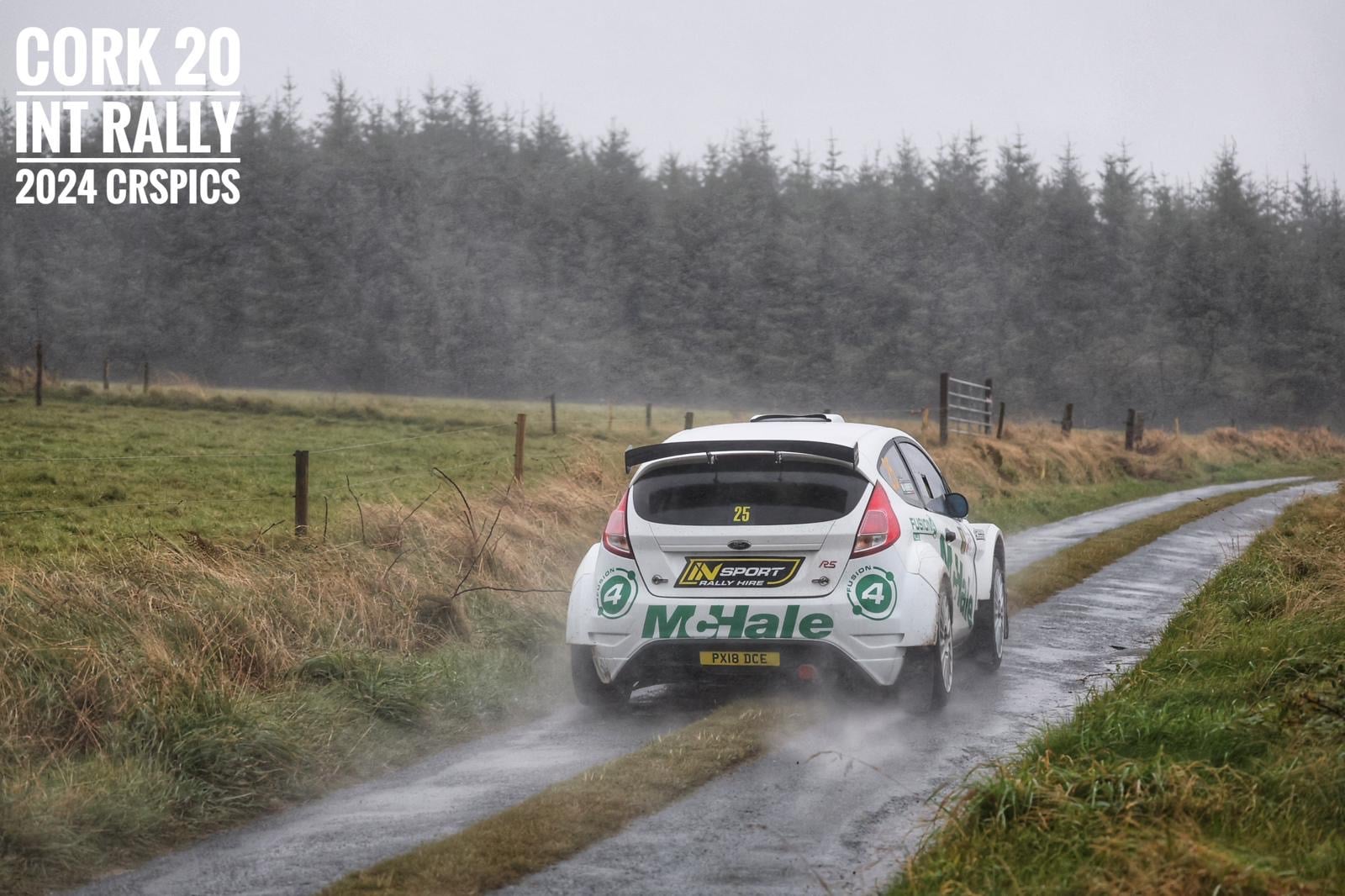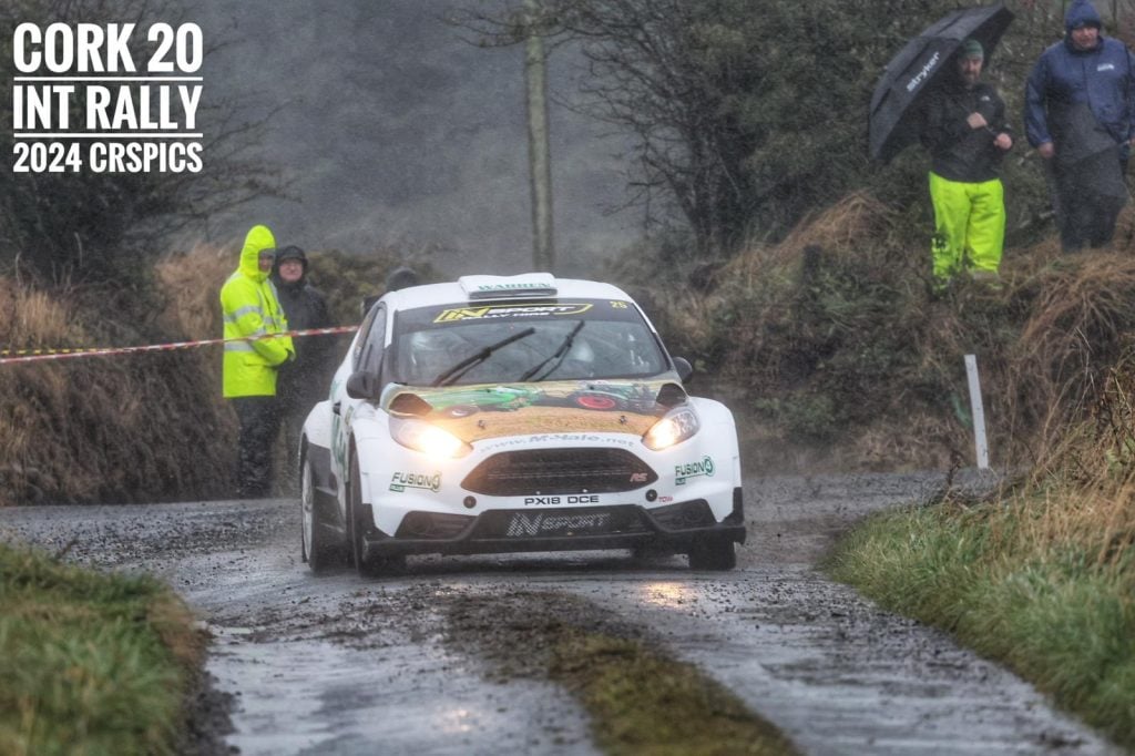 Torrential wind and rain paved the way for John Warren and Ruthann O Connor yesterday as they rolled out the McHale Rally team Fiesta R5 for an outing at the O’Connell Group Cork 20 Rally, the final round of this year’s Irish Tarmac Rally Championship.